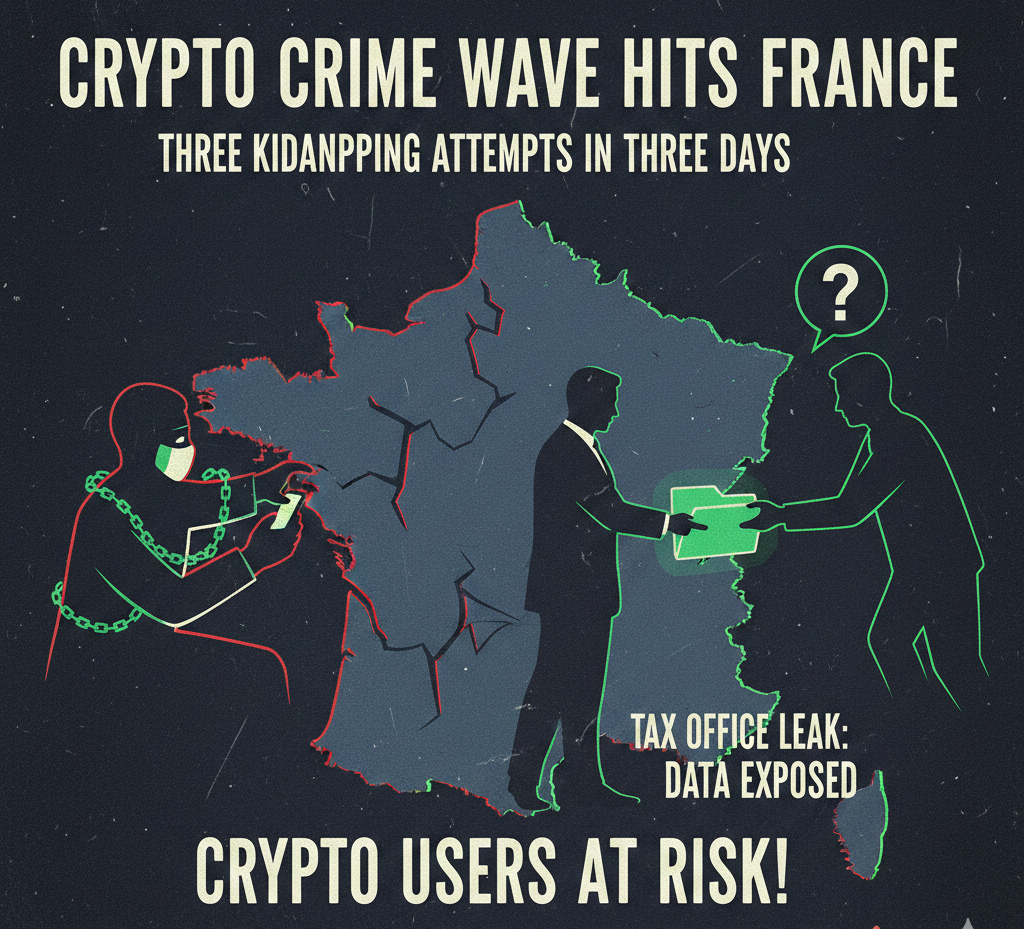 France has seen three attempted kidnappings in three days linked to cryptocurrency, according to Cryptoast. Criminals targeted people involved in crypto, and a tax office worker was caught leaking private information about crypto owners to an unknown person. This shows that cryptocurrency users are facing increasing safety risks.